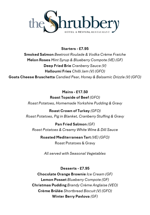 Sample Sunday Lunch Menu*