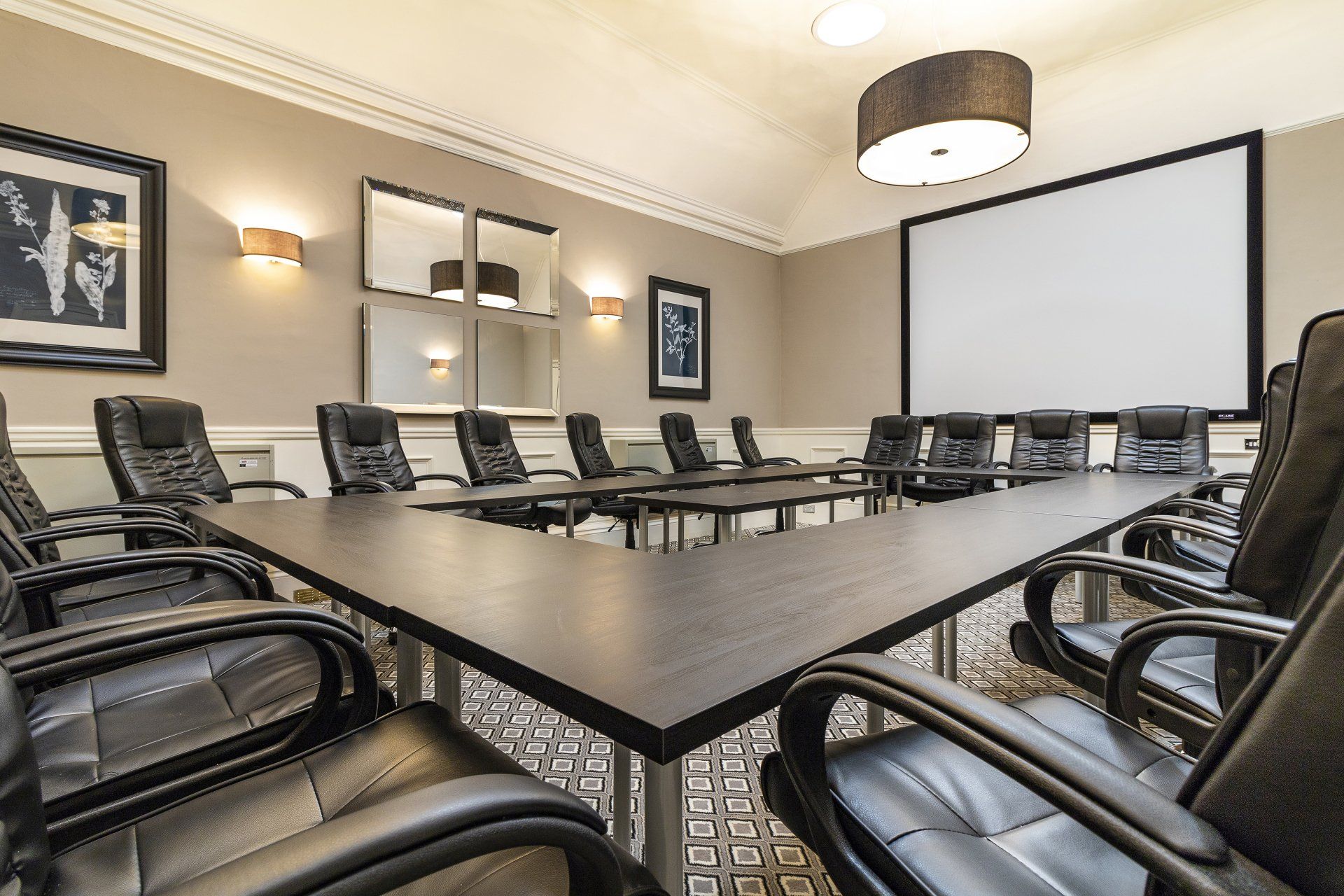 First floor location with boardroom layout. Room size: